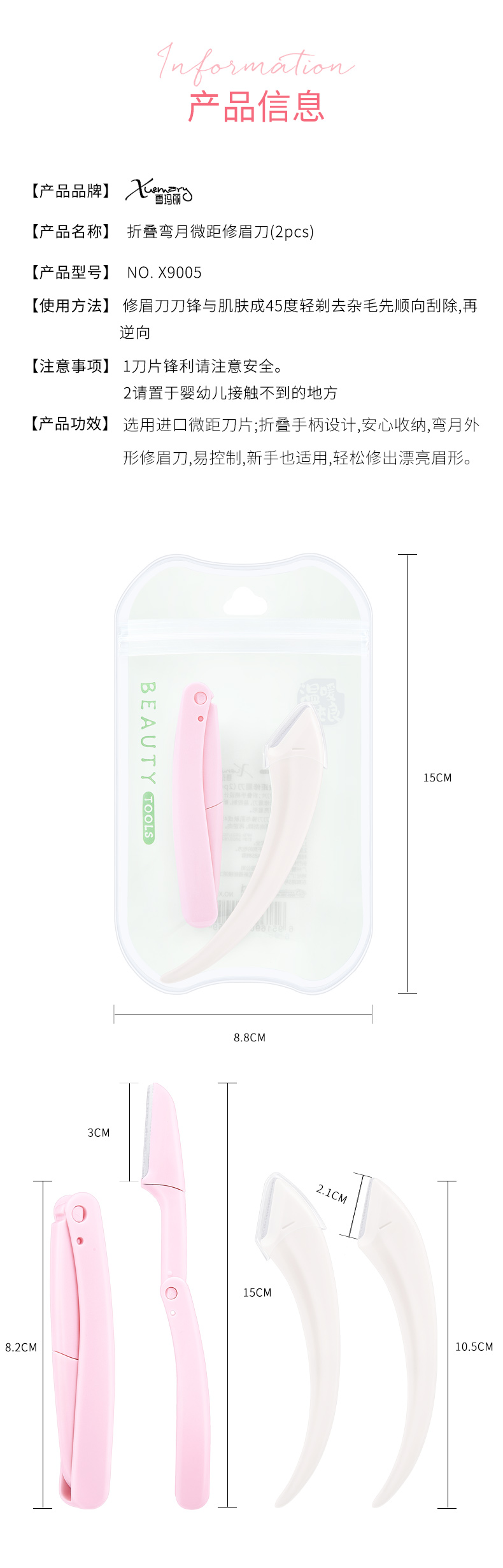 X9005-折疊彎月進口修眉刀2pcs